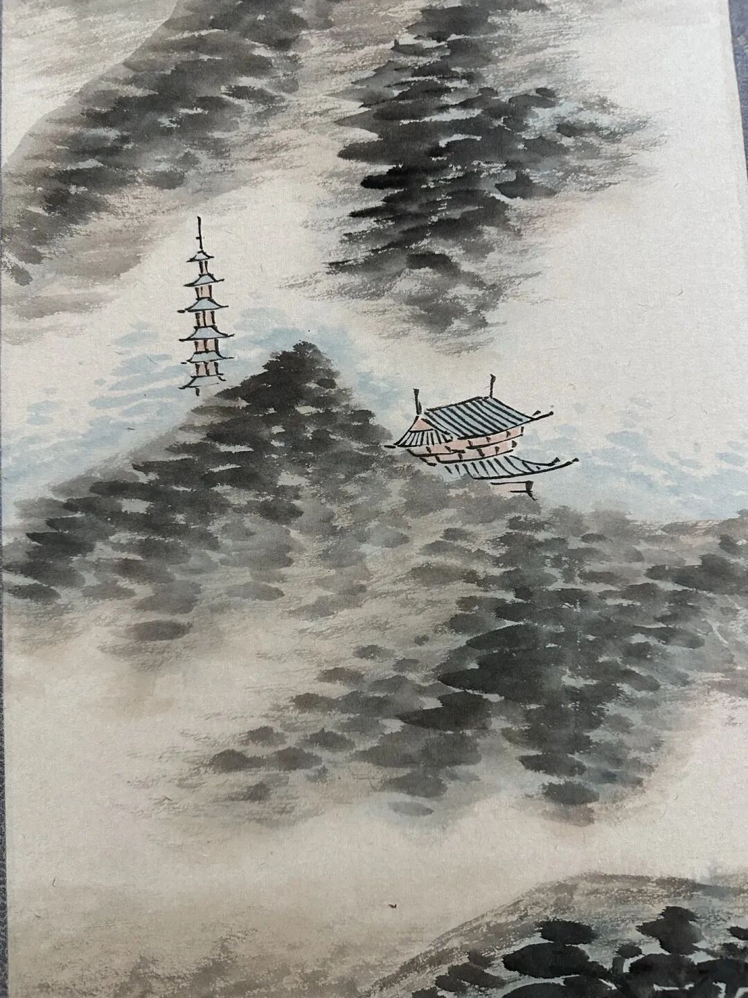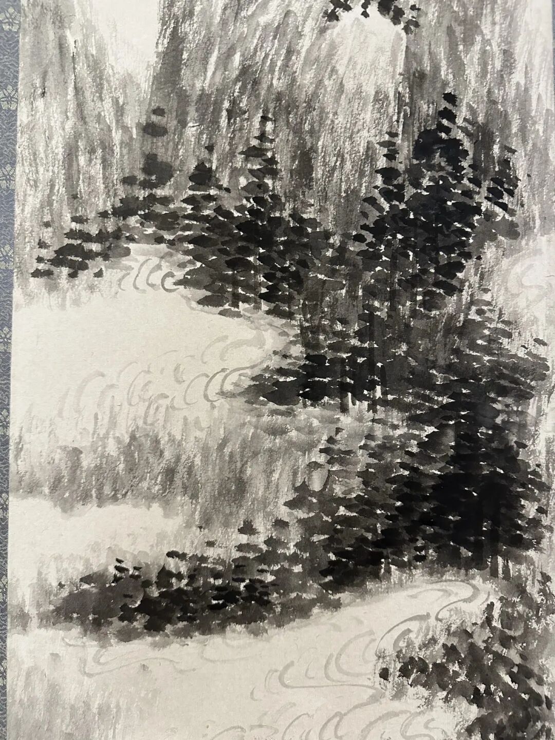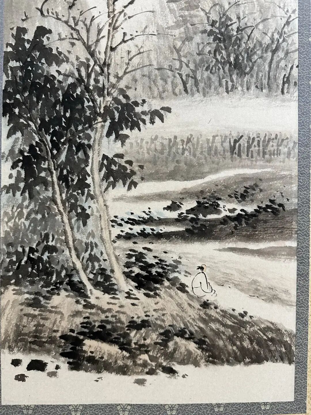 线条全是写书法的笔头儿,中锋稳,侧锋活,山石勾勒干净利落,皴法不多,但层次一点不缺。