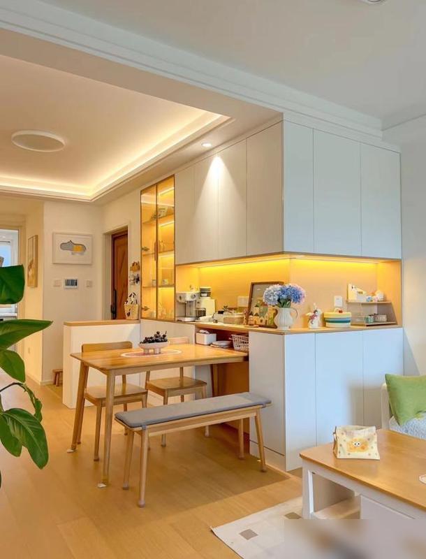 最后,空间得“活”起来。我家把阳台封了,和客厅连在一起,放了个小茶桌,平时喝茶晒太阳;餐厅和客厅不硬隔,摆个可伸缩的餐桌,人多展开,人少收起来,吃饭、办公都不耽误。原本零碎的小空间,这么一“串”,反而有了大平层的通透感。