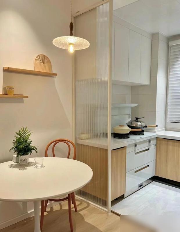 隔断别用实墙,试试“透”一点。我家把原来的厨房墙砸了,换成玻璃推拉门——做饭时关着防油烟,平时打开,客厅、厨房一眼望穿,光线能穿堂过,小空间立马“连”成一片。
