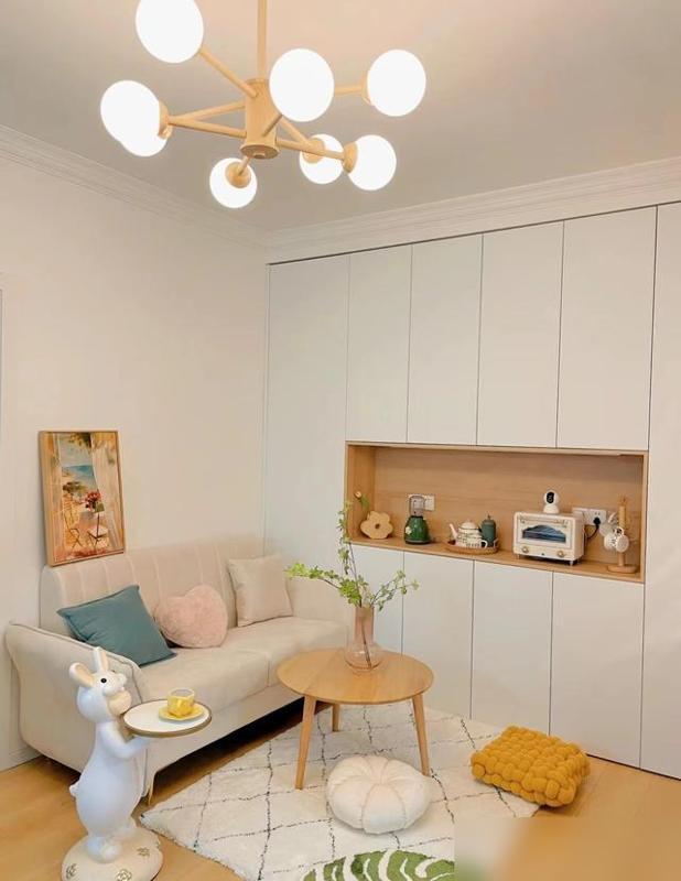 然后是家具,得“小而精”。我家客厅没买大沙发,选了个三人位的布艺沙发,底下能抽拉储物;茶几换成了可移动的小圆几,来客时拼一起,平时收边上,一点不挡道。最妙的是选了细腿家具——沙发腿、餐桌腿都细细的,露出地面,视觉上就像给空间“松了绑”,比那种敦实的落地款显大不少。