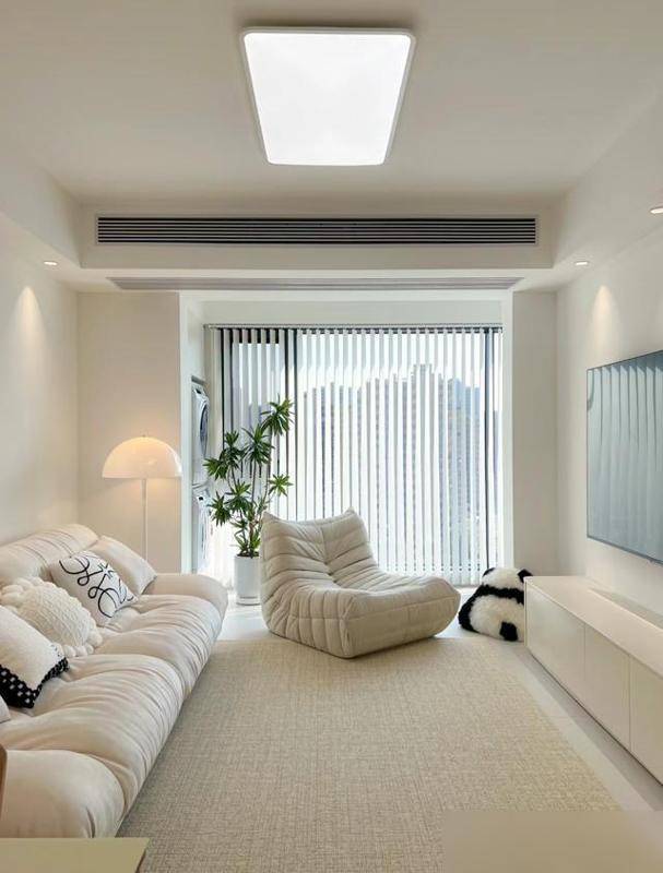 窗帘也有“小心机”。以前图方便挂半帘,结果天花板到窗帘顶空出一截,显得屋子更矮。现在改成“顶天立地”的窗帘,轨道尽量往上装,快挨着天花板了——嘿,这一挂,屋子像被“拔高”了,垂感也好,风一吹,跟给窗户披了层纱似的,看着就宽敞。