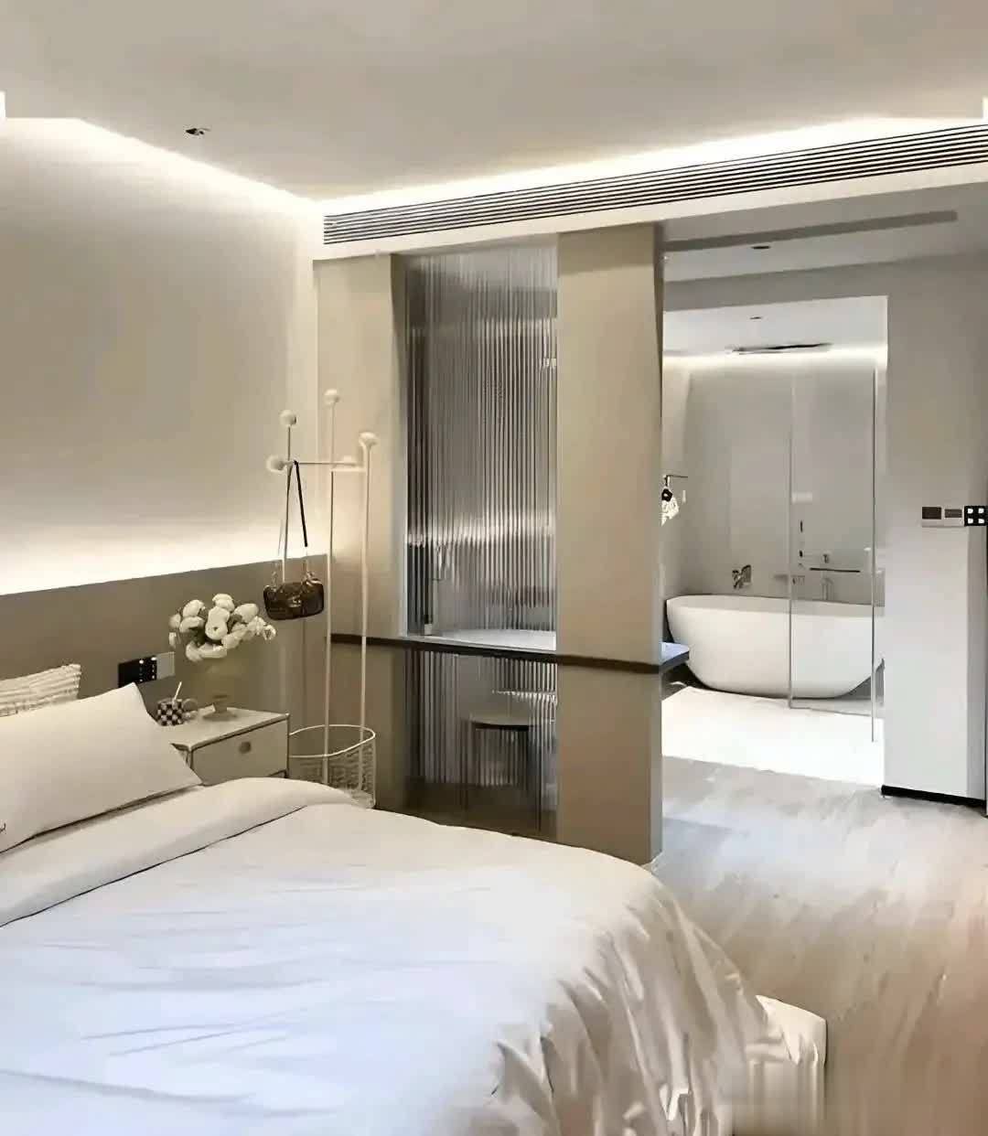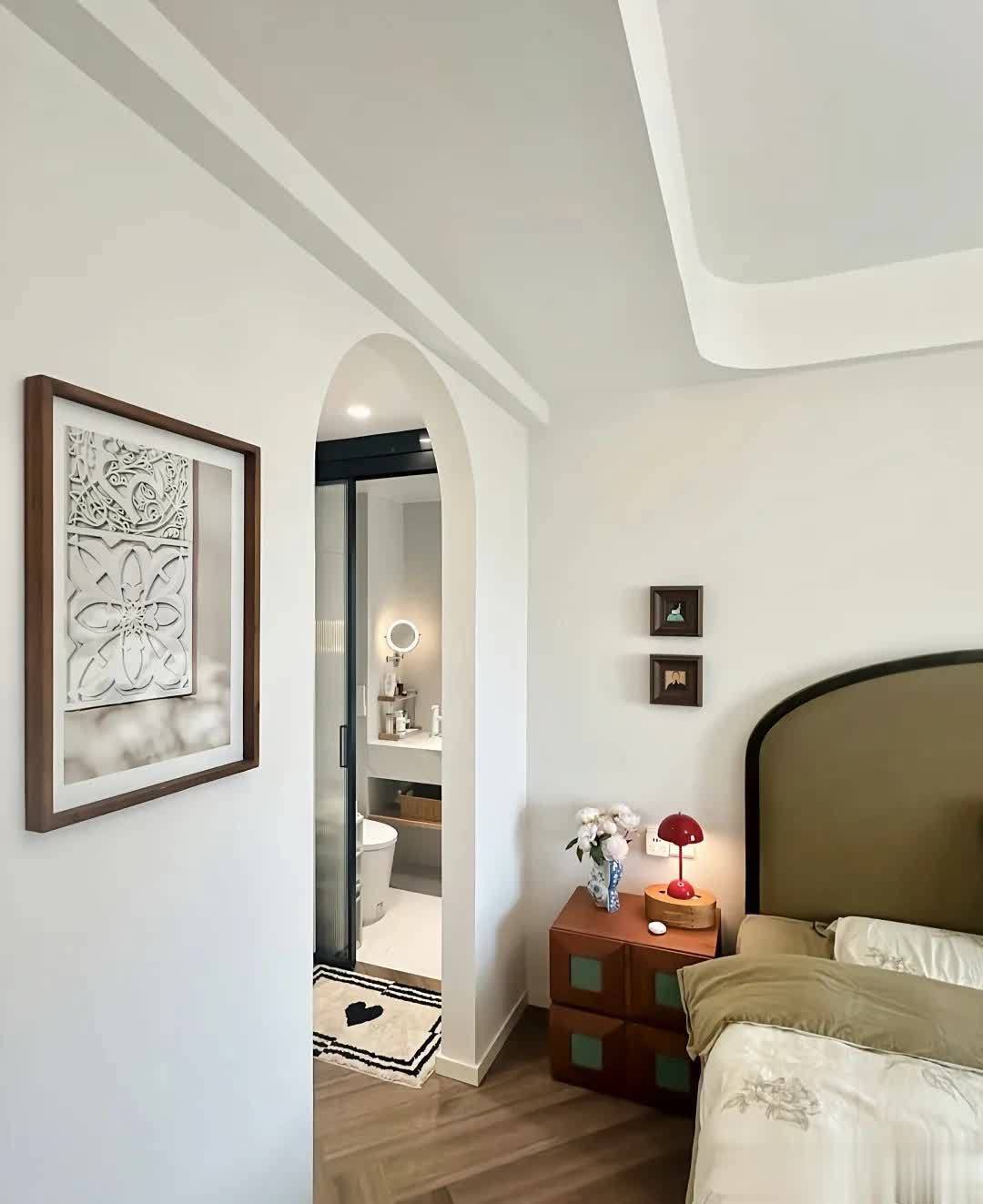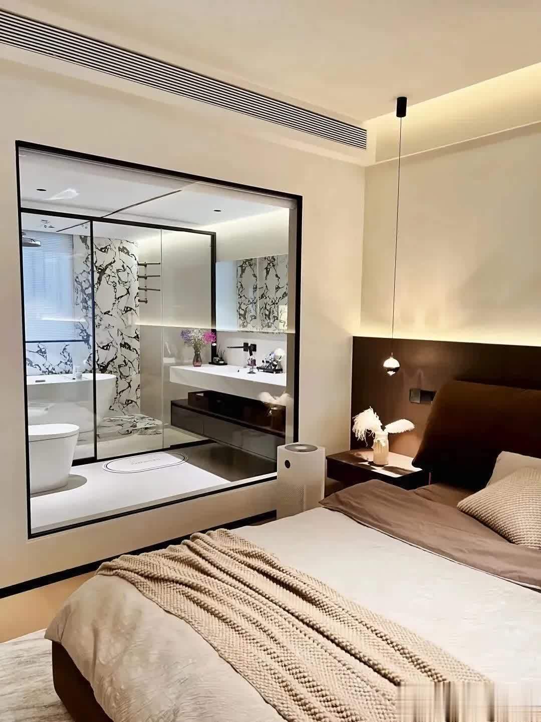 一旦塞进一个卫生间,立刻变得拥挤:床变小、衣柜变窄、过道变挤,整体压抑感特别强。